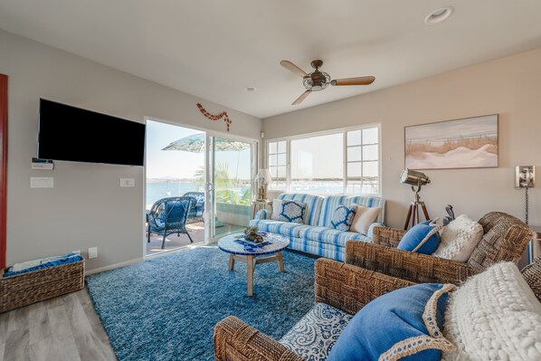 Prepare for an unforgettable San Diego experience in this stunning 3-bedroom, 2.5-bathroom bayfront duplex. Perched in the heart of Mission Bay's vibrant San Juan Cove, this upper-level retreat offers the best of indoor-outdoor living with sweeping views and direct boardwalk access.