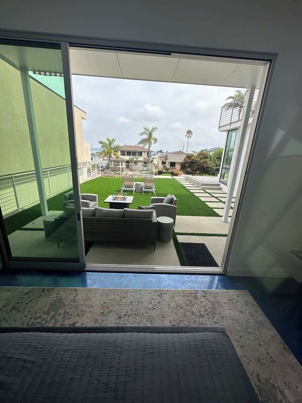 Indulge the luxury and modern style of this private master suite in a brand-new home in Ocean Beach. As you walk through your private large front yard, you can relax in a well-designed patio seating area. The master suite has everything you need; Kind size bed, a 60” flat screen TV, mini fridge, and coffee maker.