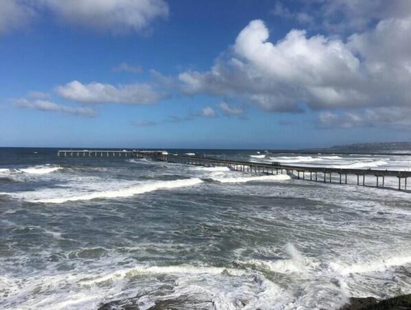 San Diego Surf Lodge #1 is just 100 ft from the Pacific and a 5 minute walk to the sand! It's a 600sq ft 2 bedroom/1 bath. It features luxurious beds, a kitchen, HD TV, and blazing fast WiFi. 100 steps to reach the top of the stairs that lead down to the beach!