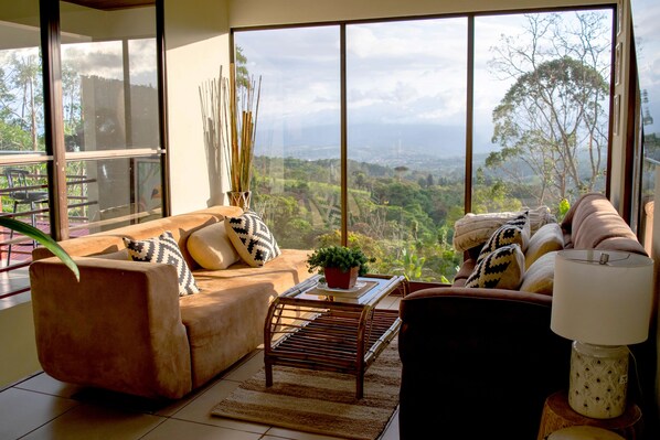 In the living room, relax and make memories with your family. Enjoy a leisurely afternoon feeling the natural panorama with your family and friends while lounging on a plush couch and watching your favorite film. It immediately feels like home!