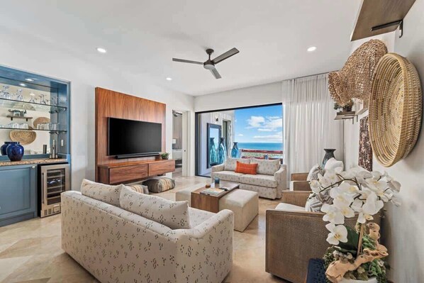 Step onto your expansive terrace and watch the sunrise over the water, or enjoy al fresco dining with the twinkling lights of San José del Cabo in the distance. Inside, the penthouse blends modern elegance with inviting warmth, featuring a fully equipped kitchen, spacious living and dining areas, and comfortable bedrooms—each designed to be a private retreat.