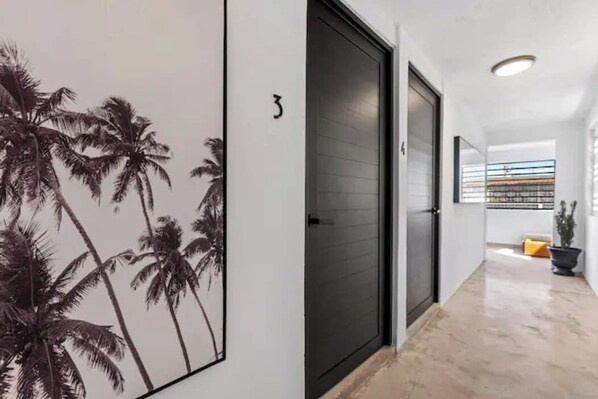 So trendy & so close to the beach! This boutique structure is a walk-up. One suite is on the ground flr, & three are on the 2nd flr. The interiors of all suites are designed in the Japandi style. We are in a one-of-a-kind residential beach neighborhood w/ a diverse population. W/ the best beach in San Juan is only a few minutes away, bordered by Loiza St., which is rich in culture & diversity & home to many unique restaurants, eateries & bars, you will undoubtedly satisfy your vacation appetite.