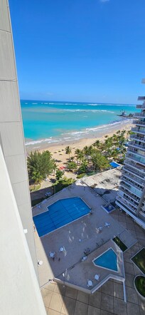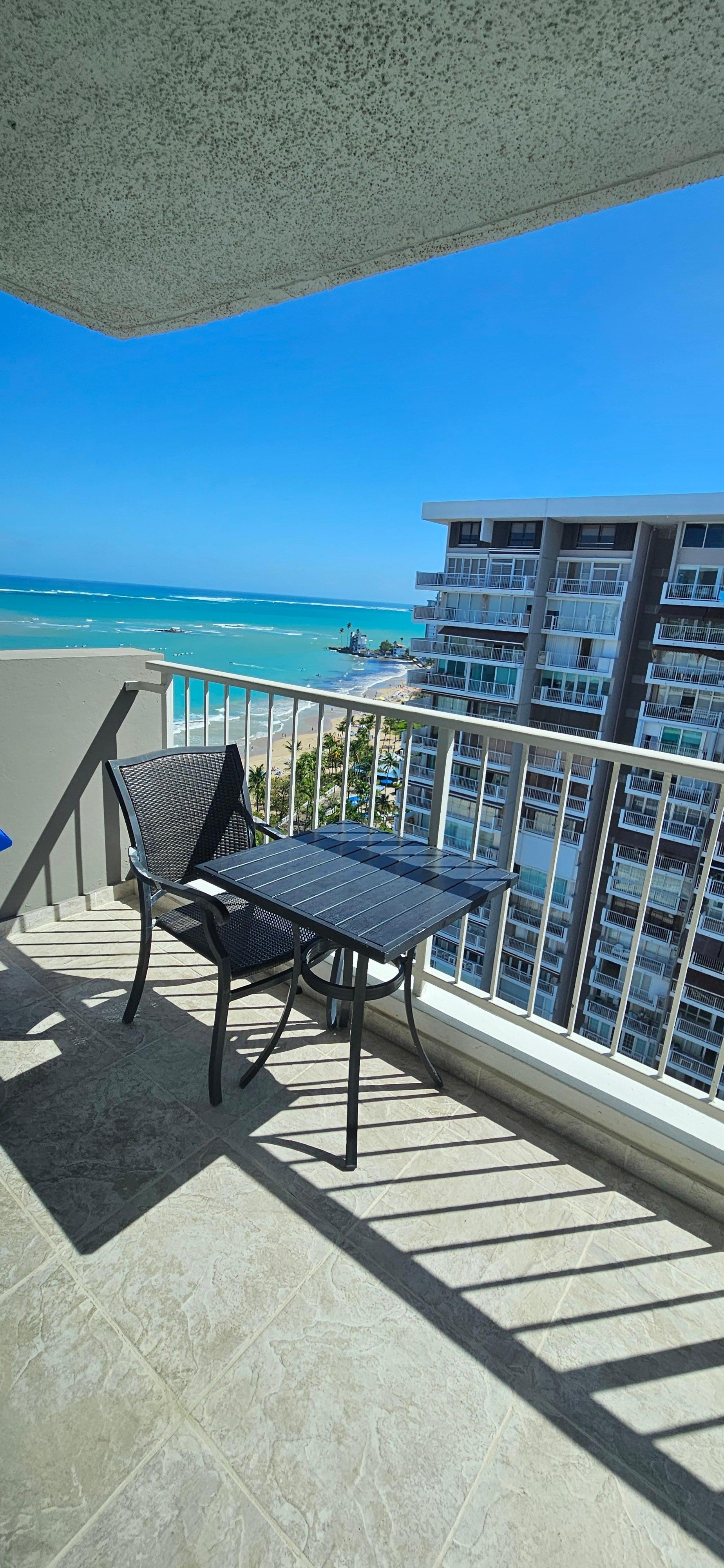 The condo had everything we needed and more. 2 beach chairs and 1 lounger, a cooler, beach blanket, beqch towels, snorkel, fins, sand toys, rolling carry cart, sun screen, bug spray, coffee & filters, etc. The view from the balcony was very nice but full sun so a bit to hot to sit out there for to long. The bed was very comfortable. The facility pool was large and clean and accessible to the beach. The units parking spot was very convenient being located right next to the entry door and elevators. We used the laundry area which is in the plaza area and open to the outdoors so we did not have to sit in a hot laundry room while our clothes were washing. The condo is in a perfect location for restaurants, beach, casino, necessities.