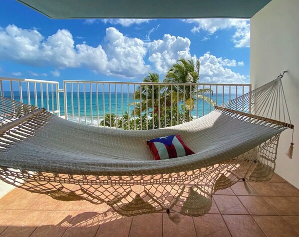This beautiful apartment is a beach front apartment. Ocean view and views of el Yunque. Less than 10 min away from El Yunque. Five min to the famous Kiosk of Luquillo where you will find all our traditional foods and other. You will be on miles of private corridor where the tangler turtles nest. You have the beach and you have the Boca river.
