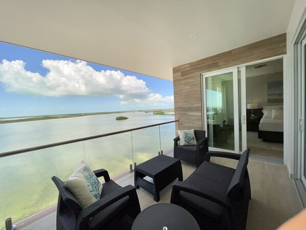 Our GOLD STANDARD, 1 Bed/1 Bath condo with PENTHOUSE views is part of the up-and-coming Sunset Caribe Belize Resort. You will have the comforts of our full kitchen, living area, spacious master bedroom and most importantly our relaxing balcony. You will have expansive views, overlooking the Cayes or Bayside of San Pedro, from EVERY room. The Sunset views are simply breathtaking. See FAQ's BELOW: