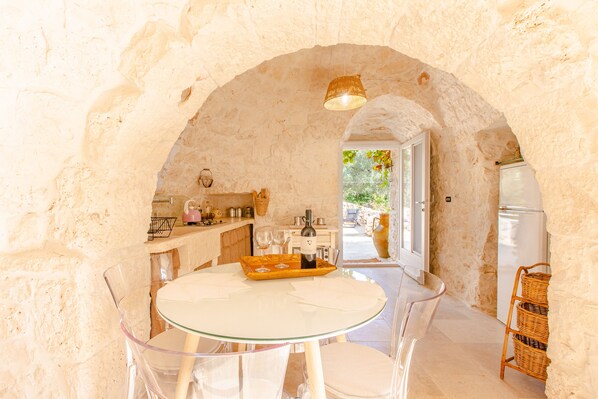 Typical Apulian trullo - outdoor kitchen - bbq - outdoor shower