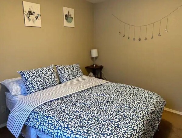 The Cozy Home has 4 bedrooms, 2 full sized bathrooms, office space, laundry room, a full sized kitchen, living room, and a two car driveway.