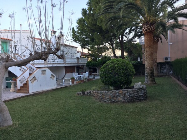 Alles kann mit Rollläden verschlossen werden. Auf der Terrasse befindet sich ein Sonnenschirm.