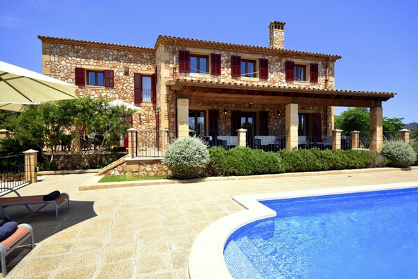 Die Natursteinfinca Sa Torre nova liegt im Osten der insel, nur 3km vom Meer entfernt und mit Meerblick. Das Objekt bietet Platz für 10 Personen mit 5 Schlafzimmer, 6 Badezimmer und ein WC. Das Wohnzimmer ist funktional, die Küche ist hell und voll ausgestattet. Es gibt zwei ganz tolle Terrassen mit wunderschönem Panoramablick sowie Meerblick. Der private Pool ist recht gross mit 11,50 metern länge und 5 metern breite. Ideal für grössere Reisegruppen oder Familien (Lizenznummer VT/1716).