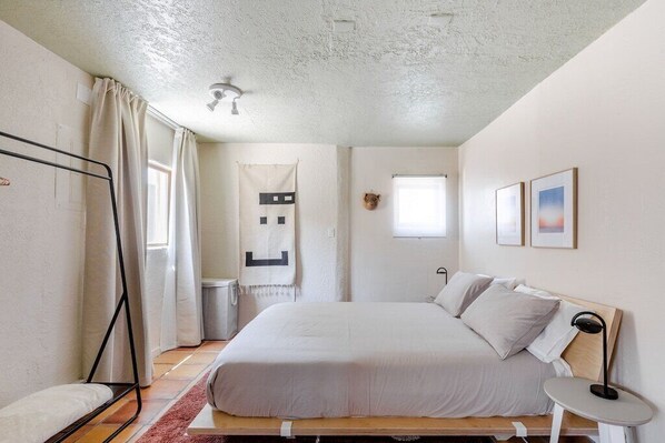 Casa Estaca, located in the heart of the historic and popular Railyard Area, is a quiet and cozy hideaway in a wonderful part of town! The Railyard, Santa Fe Plaza, Museums, Canyon Rd, and an array of bars and restaurants, are all within a one to fifteen minute walk. Bringing Fido? Frank Ortiz dog park only a six minute drive! Great for couples, skiers, small families, and furry friends. *Free parking around the corner (2 min. walk to unit).*