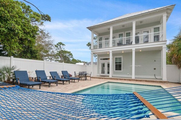 Stellen Sie sich folgendes vor: Gehen Sie in einen breiten, offenen Grundriss mit Küche, Esszimmer, Gästetoilette und Hauptwohnraum mit bequemen Möbeln und einem großen Flachbildfernseher! Das große Schlafzimmer ist entfernt im ersten Stock versteckt, mit einem Kingsize-Bett und ein Bad, das eine ebenerdige Dusche und separater Badewanne zum Einweichen verfügt. Gehen Sie gerade aus Küche und Wohnbereich auf die Terrasse und den privaten, eingezäunten Pool-Bereich. Es gibt jede Menge Sitzgelegenheiten im Freien und ein Grill für Ihren Sommer-Dinner-Partys. Genießen Sie den großen privaten Pool mit optionaler Heizung, für die faulen Sommernachmittagen vorgenommen. Auch der Pool war mit Ihnen im Verstand entworfen! Ein großer 6-Fuß-Zugang zum Pool ist perfekt für die Kleinen oder zum Sonnenbaden.