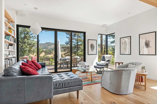 Alle Zimmer bei Modern Hillside Retreat | Hot Tub | Views | Bocce verfügen über Extras wie Kamine und eine Klimaanlage sowie Ausstattungsmerkmale wie Arbeitsbereiche und Esstische.