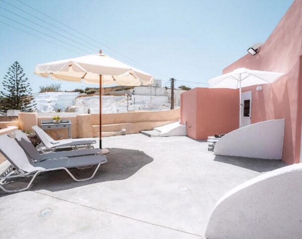 Ist Thrilling Santorini Villa| Villa Denethor | Double Room with Shared Furnished Terrace | Karterados haustierfreundlich?