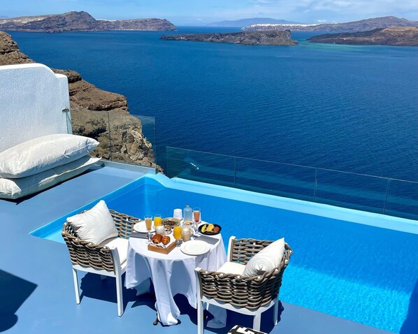 Virethra Suite, Divine Sea and Caldera Views, Furnished Terrace, Indoor.