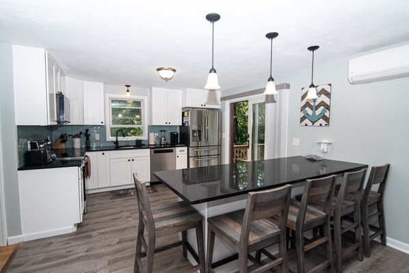 Nachdem Sie von Ihrem eintägigen Abenteuer zum Haus zurückgekehrt sind, nehmen Sie den Sand in einer der beiden Duschen ab. Entspannen Sie auf der Außenterrasse mit bequemen Loungemöbeln und genießen Sie die frische Luft und das Grillen im Freien in dieser ruhigen Gegend. Machen Sie einen kurzen Spaziergang zum Strand Pettaquamscutt am schönen Narrow River und beobachten Sie den Sonnenuntergang.
