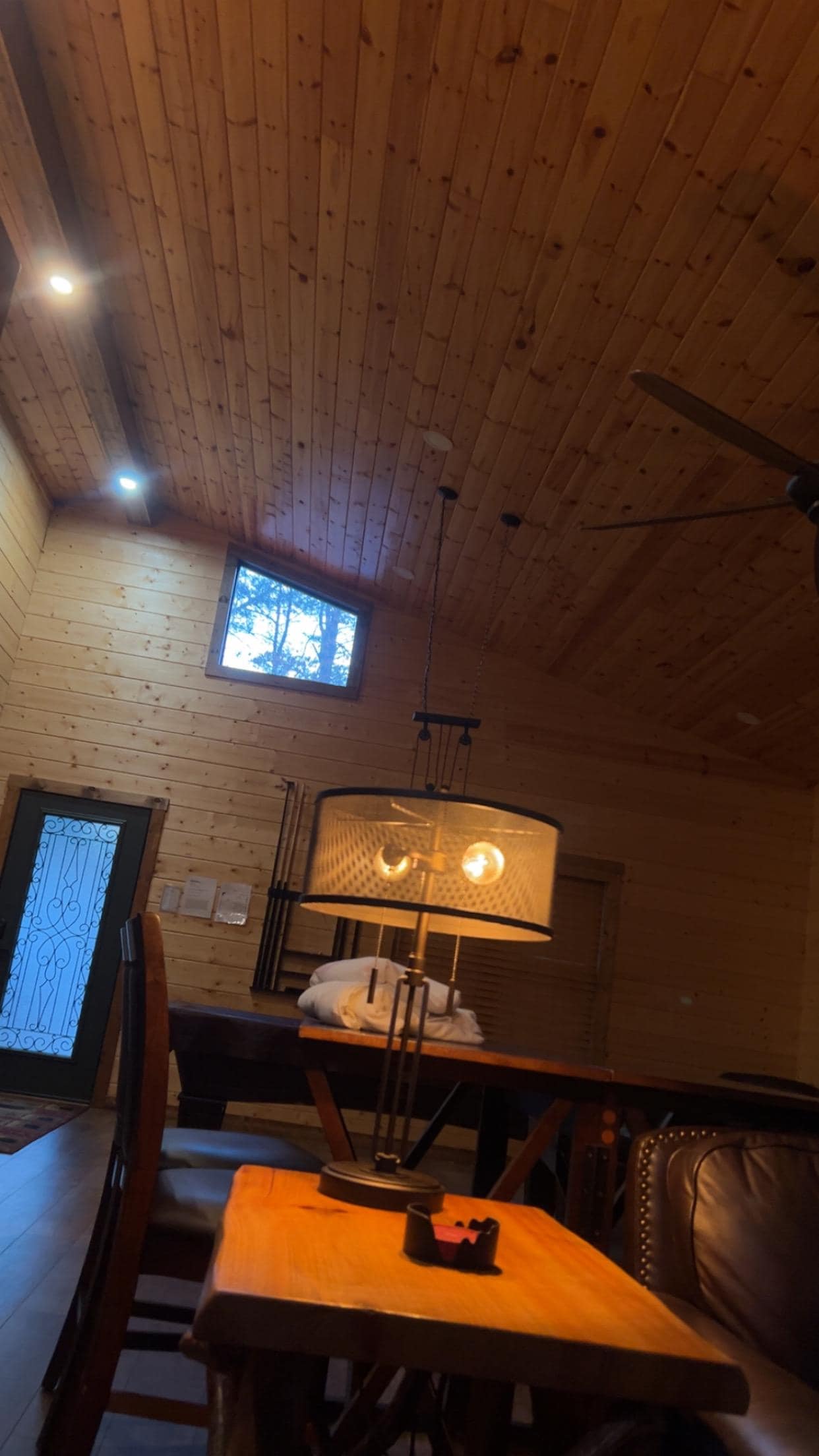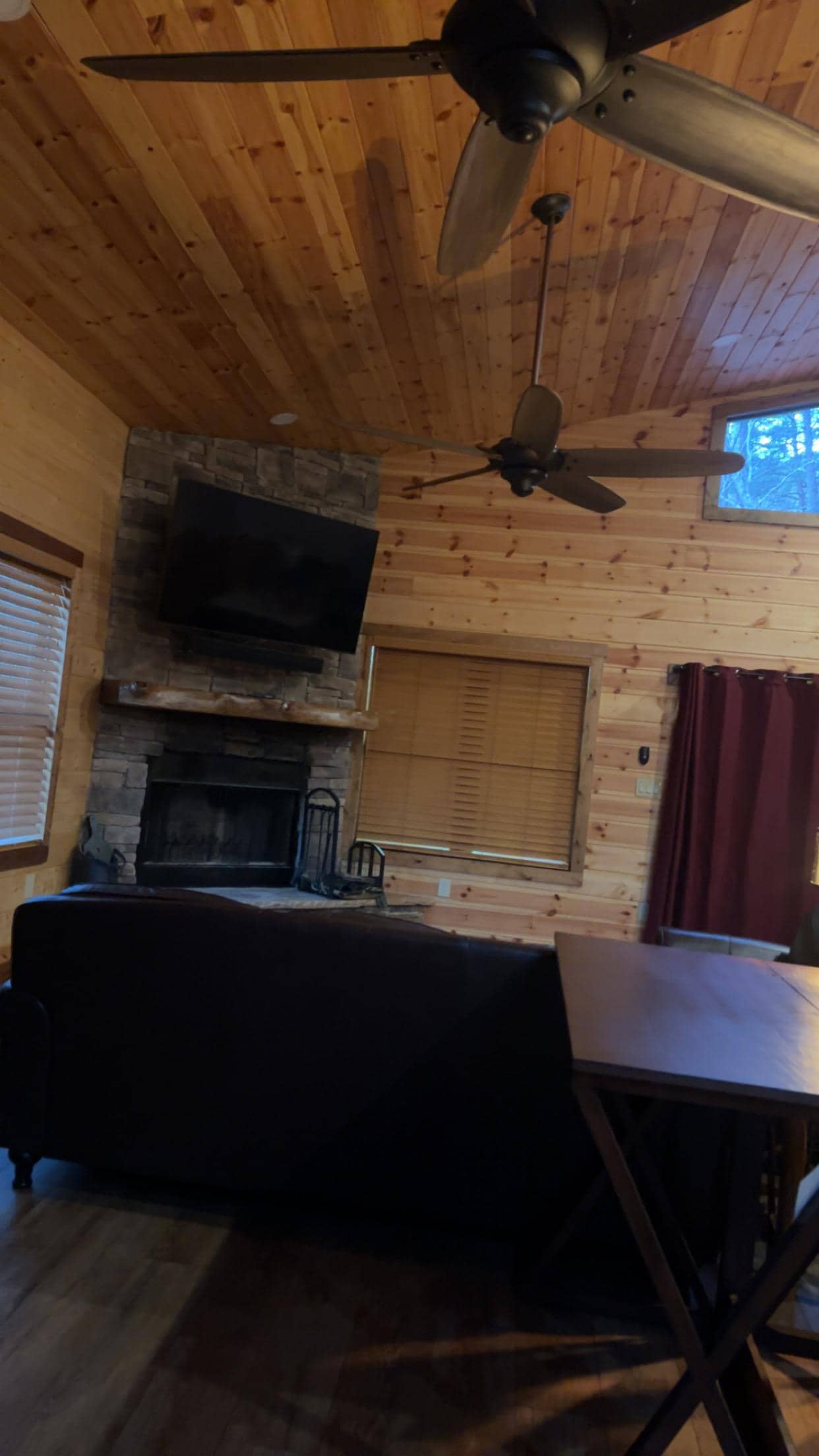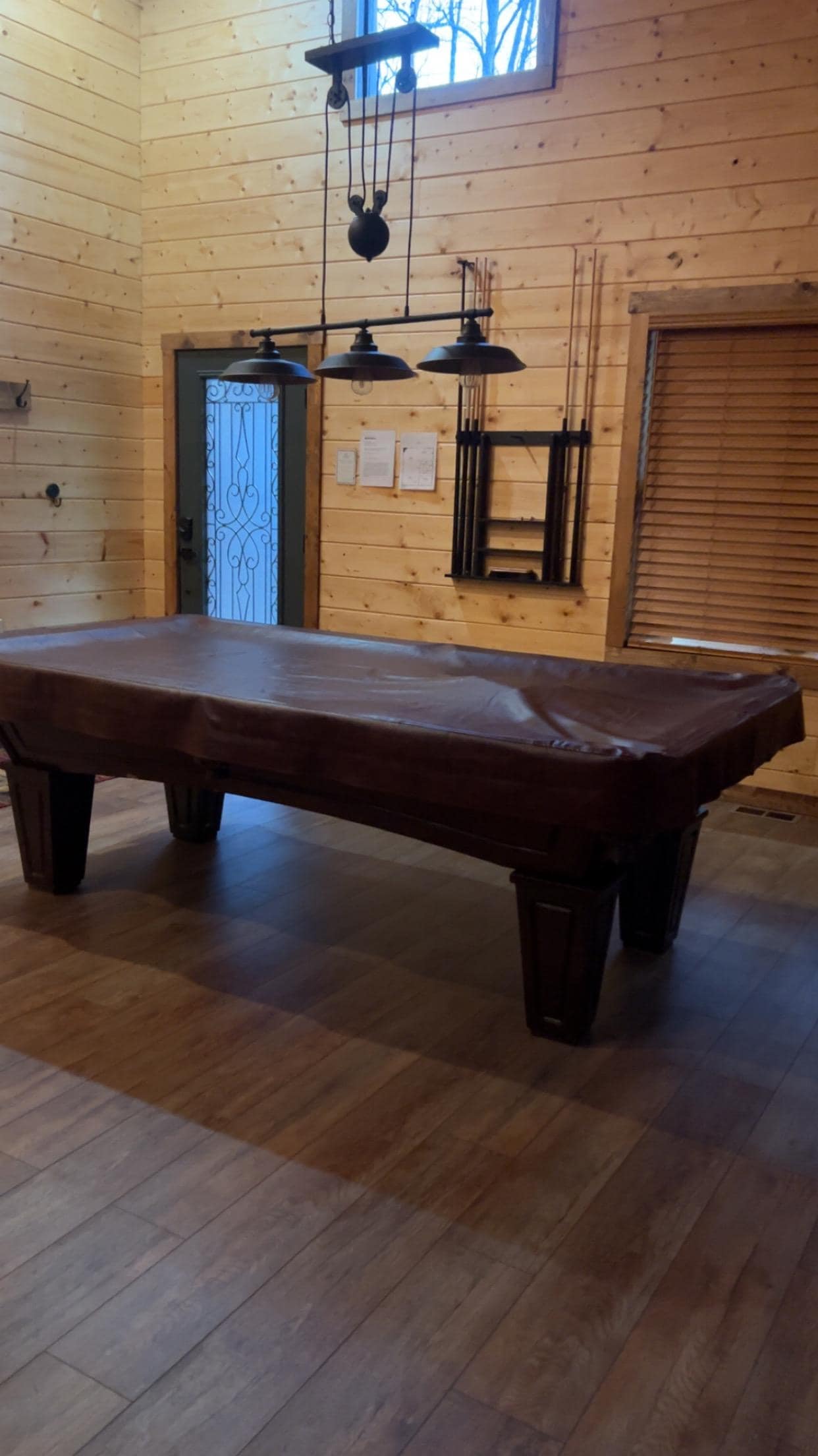 Settle into a comfortable cabin with a fun bear theme! There's space for everyone (and up to two dogs) to come along to this cheerful cabin in the woods. Light up the firepit, or keep the fun going inside at the wood-burning fireplace. If you're visiting during the summer, enjoy the cooling power of central air conditioning. Plenty of board games are on hand and there's room for everyone to gather around the private pool table for a round of billiards. The full kitchen (conveniently placed by the grill setup outside on the deck) features full-size appliances and a stone-top prep table that doubles as a fun dining space. Guests staying in the main bedroom can enjoy an en suite bathroom featuring double sinks, a stone standalone shower, and a jetted tub. But no matter where you decide to rest for the night, there's a spot in the private hot tub with your name on it.