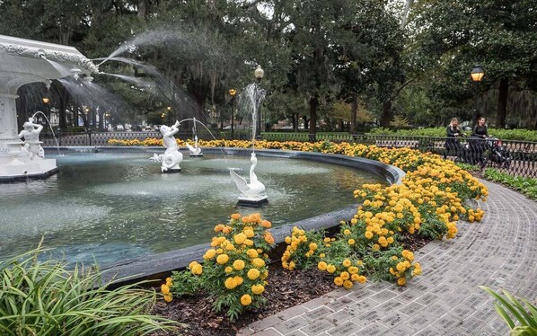 In the morning, we recommend taking a short stroll across Forsyth Park to The Sentient Bean for a latte or refreshing iced coffee. For lunch, pop over to Bull Street Taco and explore their unique twist on tacos. As you wander around town, stroll through the Squares of Savannah, enriched in history. For dinner, head north downtown, where there's none better than The Grey, a Southern fine dining experience retrofitted inside an old Greyhound Bus Station. After a day out, relax in the park and listen to the sound of the Forsyth fountain.