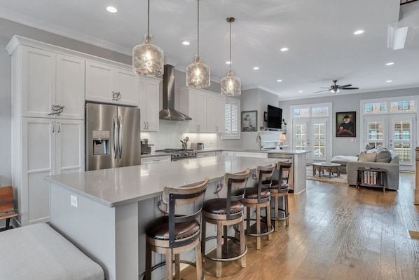 The kitchen itself boasts high-end stainless steel appliances and elegant quartz countertops, providing an optimal space to prepare delectable meals. Whether you opt for a intimate dinner at the kitchen island, or head out to one of Savannah's renowned restaurants, the options are endless.