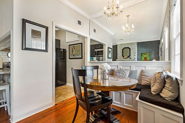 Adorable place in a great location. We didn't notice on the booking information there wasn't a dishwasher but made eating in with a family of 4 less than desirable (good thing Savannah has such amazing restaurants). A shade over the back bedroom skylight would improve the sleeping situation. Also, I'd suggest getting rid of the barstools and adding another comfortable chair to accommodate 4 people.
