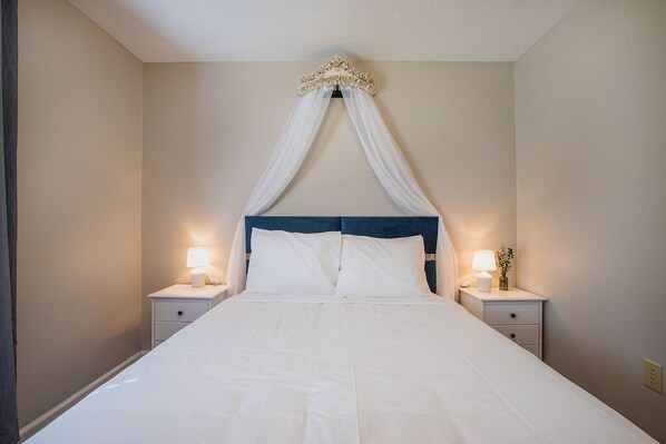 Room 1: Queen bed with canopy
