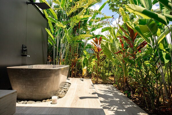 Relax on our 4-acre property surrounded my lush landscaping, ocean views, a creek running through the property and bordering rainforest reserve. Tons of wildlife and amazing bird watching with parrots, toucans and macaws frequently seen on the property.