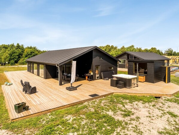 Einfamilienhaus, Baujahr 2025. 700 m vom Meer. Zur Alleinbenutzung: naturbelassenes Grundstück 2'323 m2. Aussendusche, Grill. Im Hause: Waschmaschine, Wäschetrockner. Parkplatz beim Haus. E-Ladestation. Lebensmittelgeschäft 6.2 km. Golfplatz 8.1 km. Der Besitzer akzeptiert keine Jugendgruppen. "Mads" - 700m from the sea", 3-Zimmer-Haus 142 m2. Objekt geeignet für 8 Erwachsene + 1 Kind. Wohnzimmer mit TV. 1 Zimmer mit 1 Doppelbett. 1 Zimmer mit 1 Doppelbett. Offene Galerie 1 Zimmer mit 1 Doppelbett und 2 Schlafmöglichkeiten. Küche (Backofen, Geschirrspüler, 4 Induktionskochplatten, Mikrowelle, Tiefkühler). 2 Duschen/WC. Zur Verfügung: Kinderhochstuhl, Babybett. Internet (WLAN). Bitte beachten: Nichtraucher-Unterkunft. Maximal 2 Haustiere/Hunde erlaubt. Buchungen sind nur zu touristischen Zwecken erlaubt. 813