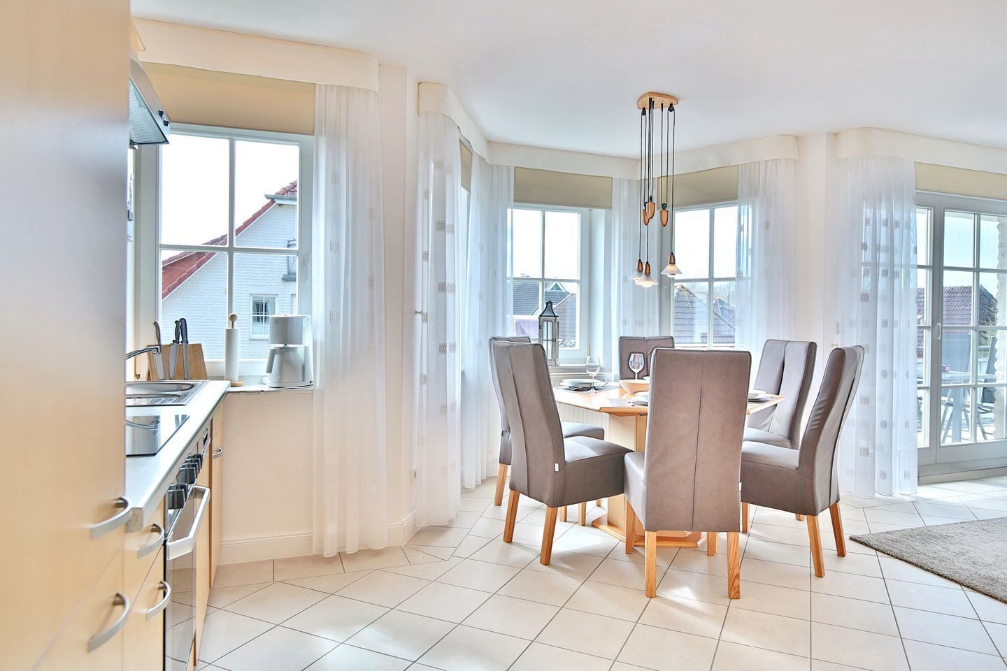 Die moderne, integrierte Küchenzeile ist ausgestattet mit Mikrowelle, Geschirrspüler, Cerankochfeld und Essplatz für 4 Personen.