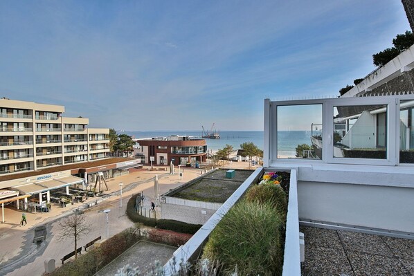 Diese 2 Zimmerwohnung in der 3 Etage ist leicht mit dem Fahrstuhl zu erreichen und bietet Platz für 2 Personen. Der Strand ist hier in greifbarer Nähe. Der Nordost Balkon mit Markise und direktem Meerblick aber auch einem Blick auf den Kurpark bietet die Möglichkeit hier entspannt zu verweilen.