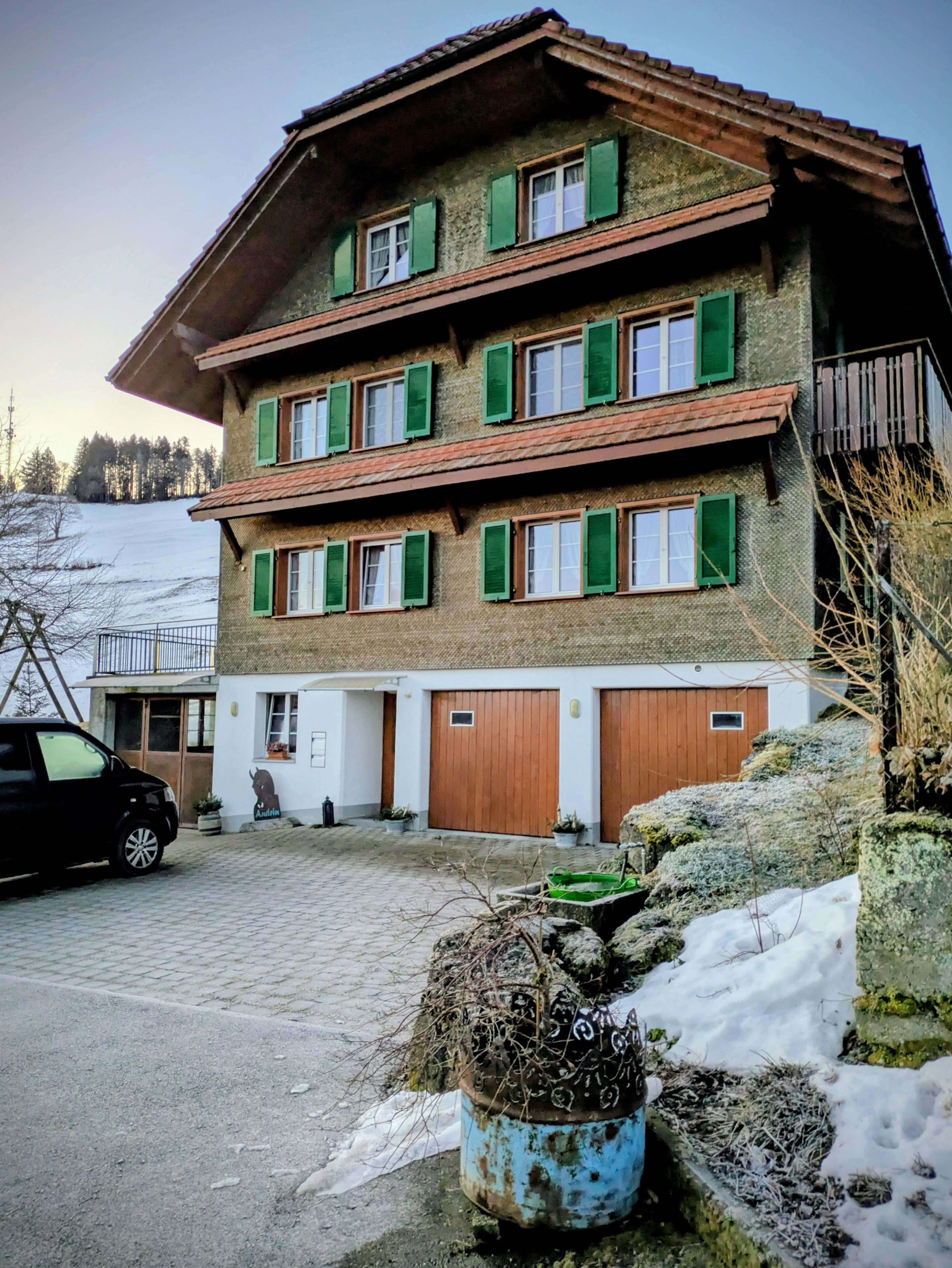 Wir vermieten eine grosszügige Wohnung im Dachgeschoss des Bauernhauses mit Wohnküche, einem Doppelzimmer und Dreibettzimmer sowie Dusche und WC. Diverse Spielgeräte (siehe Bilder) stehen den Kindern während des Aufenthalts zur Verfügung. Unsere grossen und kleinen Gäste dürfen im Stall mit dabei sein und auch gerne mithelfen beim Tiere füttern, misten, etc. Zudem bieten wir unsere hofeigenen Produkte zum Kauf an (Eier, Honig).Unser Hof liegt mitten in der UNESCO-Biosphäre Entlebuch (Napfgebiet), an sehr ruhiger Lage auf ca. 900 Meter über Meer. Die Region bietet unzählige Naturerlebnisse, vom Wandern übers Biken bis zum Wintersport. Bei uns werden Rinder betreut. Zudem haben wir zwei Forellenteiche. Angebot auf dem HofMithilfe-Möglichkeiten: