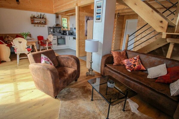 Dieses Ferienhaus in Schwaigen bietet eine Küche und einen Patio