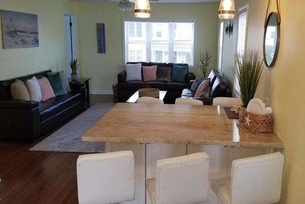4 families (7adults, 7 children). We had an excellent week! Perfect location from the shore, entertainment, food and boardwalk. Marc was available for our questions and responded quickly. Accommodations suited our group beautifully. Great find for our family shore week!
