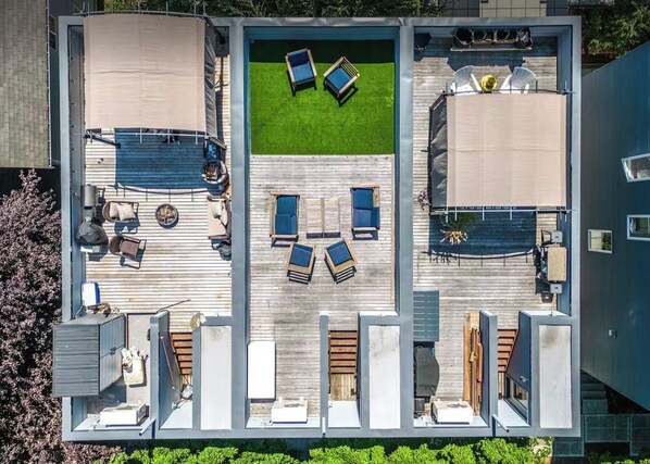 -Rooftop patio with furniture to relax, unwind, and soak up the fresh air.