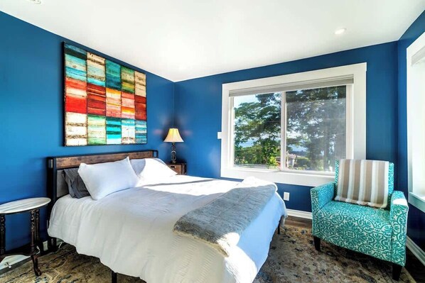 This light-filled spacious apartment has two queen beds, two full baths, and a gourmet kitchen with a full-size oven, microwave, as well as refrigerator, and BBQ/tools for outdoor dining. It also includes fast Wi-Fi, though we don’t think you’ll need it with all the scenery around.