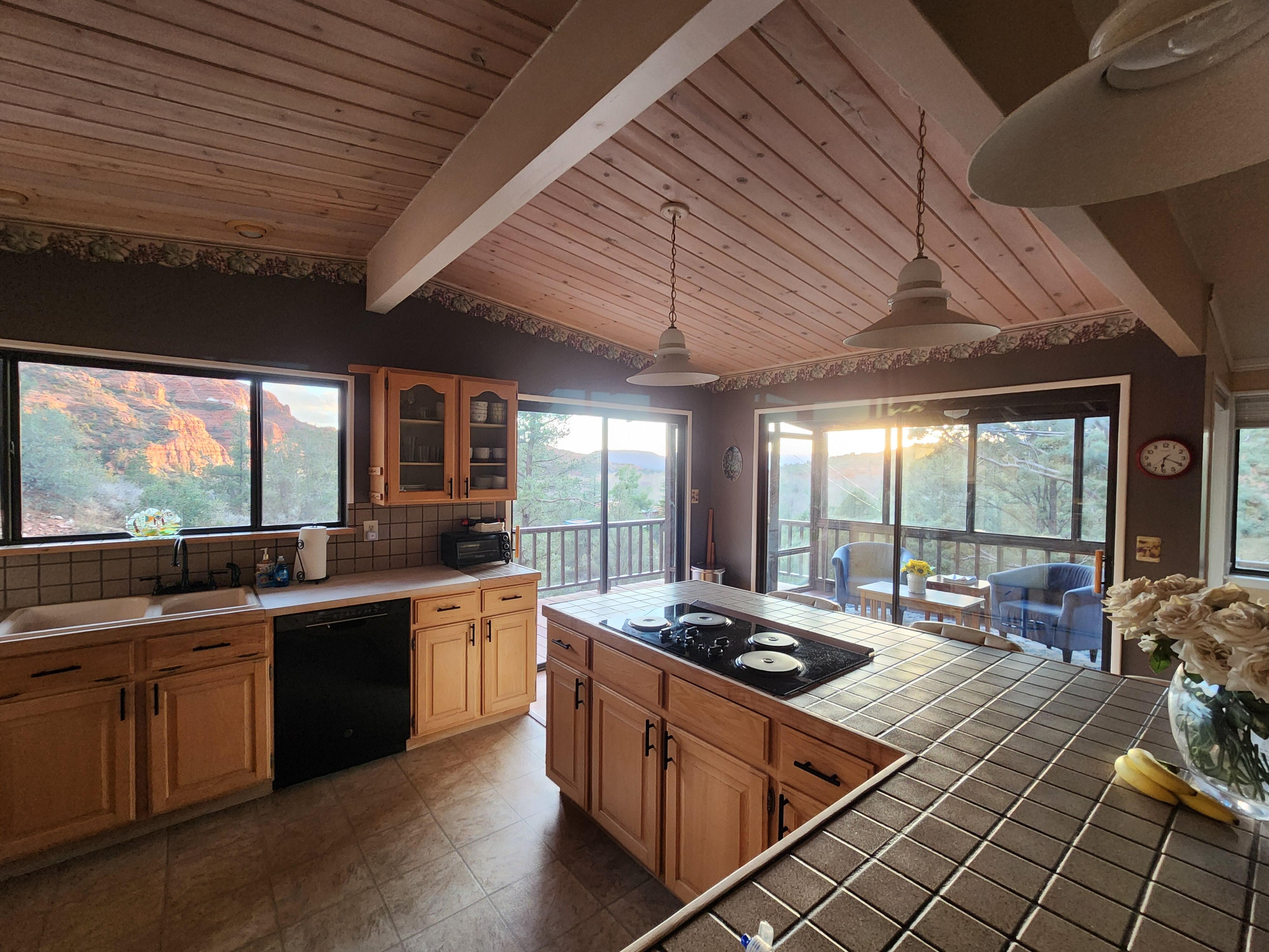 Kitchen is an Open Floor Plan and is perfect for entertaining. Main Deck off Kitchen provides outdoor dining with beautiful views of Cathedral Rock. Stargazing at night off Main Deck is breathtaking with perfect views of the Milky Way, the Big Dipper and the Small Dipper and more if you know your stars. The closeness of the stars makes you feel like you can reach out and touch them.