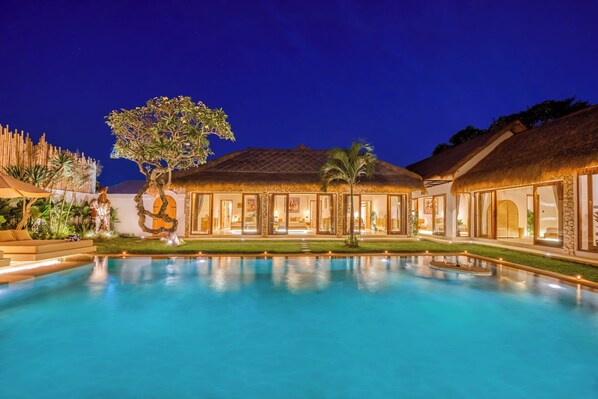 Bedrooms: Each of our thoughtfully designed bedrooms offers a unique sanctuary of comfort and style. Quiet your busy mind, with plush bedding, ambient lighting, and serene views of the villa's gardens and beyond.