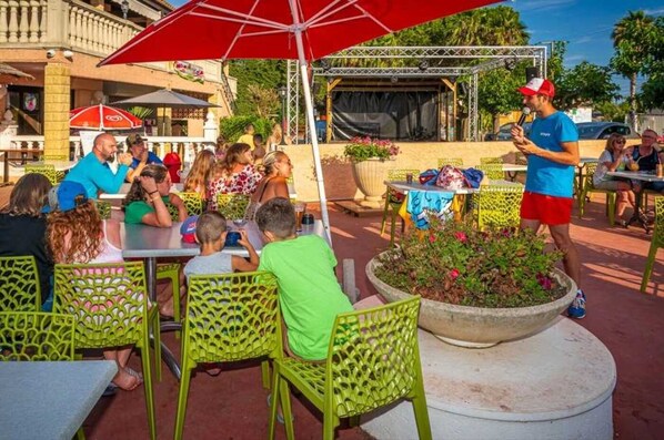Lebensmittelmarkt, eine Bar für leckere Cocktails, eine Snackbar und