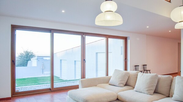- The spacious living area serves as the heart of the house, combining a sitting area, dining area, and a full equiped kitchen — ideal for family gatherings or relaxing after a day at the beach.