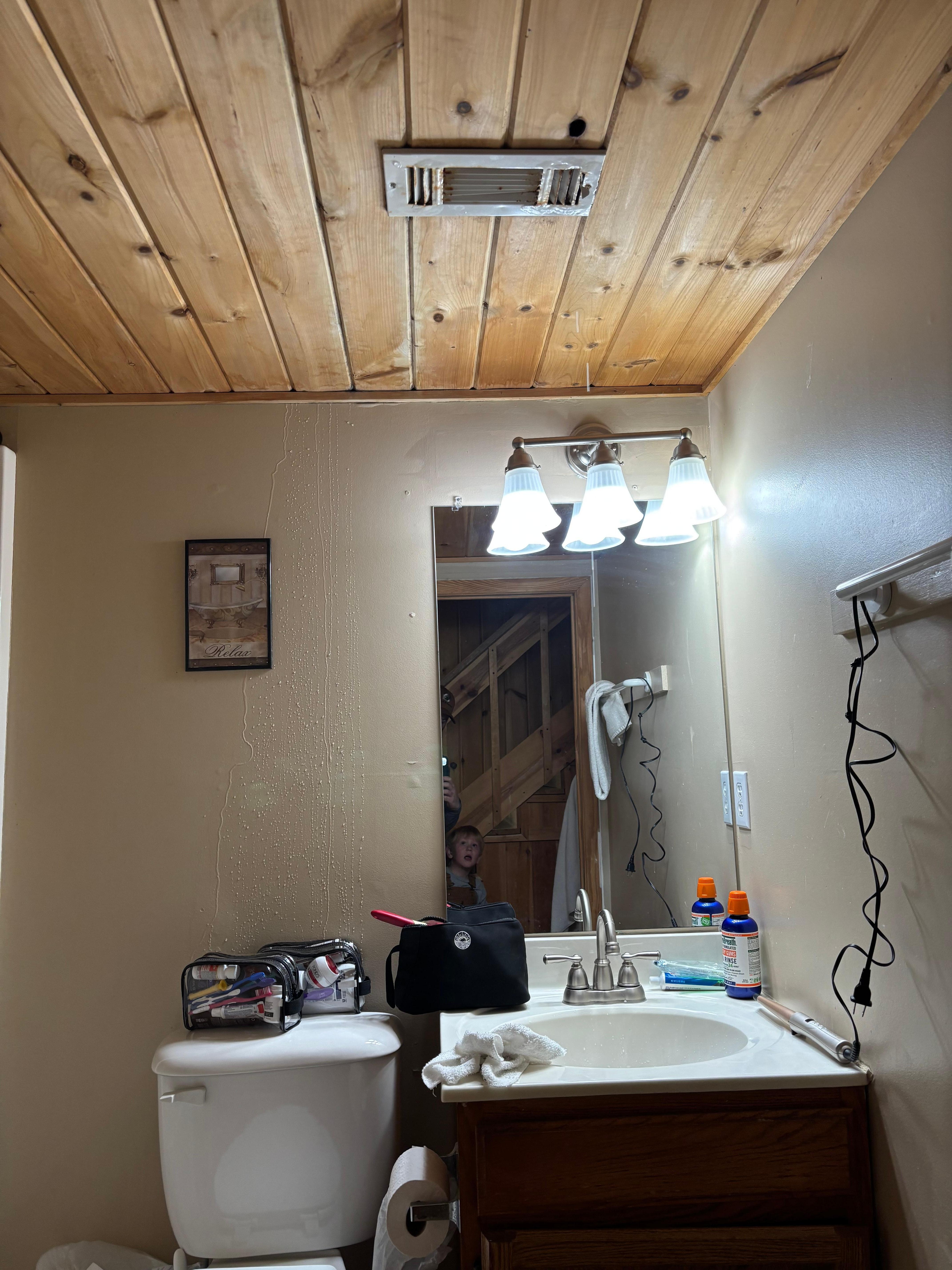Where to start? First off the place is disgusting. It looks like it hasn’t been deep cleaned in years. Then, don’t hold your breath for the property management company to get in a hurry to help you with your needs. We didn’t have towels for over 24 hours. We ended up having to purchase our own. (This was after 5 calls and 5 lies from them). The description says 3 bathrooms? Yeah, it may have 3 but only one is usable. Downstairs bathroom hot water won’t turn on (called about this said it would be 2 hours…it was almost 5 hours before someone came). Ohhh yeah, and don’t stand at the sink in the downstairs bathroom while anyone is taking a shower in the upstairs king en-suite. It will rain on your head. Then be sure that you bring roach killer. Started seeing those our last night. If you are taking anyone elderly- don’t stay here!! To get inside the place the ramp is at a 85 degree (not 100% sure about this, but it’s steep and very dangerous) angle and maybe 3 feet long, so basically straight up and down! There will be some a** busting if it’s raining or snowing. The beds are absolute garbage and the ceiling fan portion in the king middle bedroom doesn’t even work, nor does the TV. I even went to see the manager at the management company and they wouldn’t talk to me until after maintenance had been out. Still haven’t heard from them!! Also, found a review from 9/2021 talking about the same leak I mentioned. Do yourself a favor and steer clear!!!