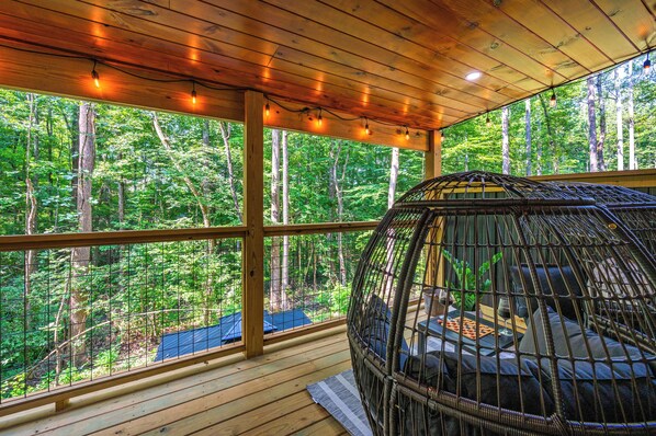 ✔ Back Deck (Luxury Hot Tub, Romantic Lighting, Plush Egg Chairs)