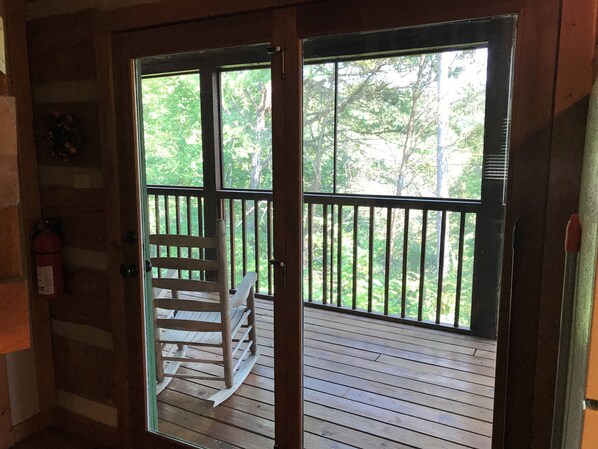 Das Appalachian Songbird verfügt über eine Gästesuite im Erdgeschoss mit Kingsize-Bett und angrenzendem Badezimmer mit Badewanne / Dusche und separatem Zugang zur hinteren, abgeschirmten Veranda. Die Gästesuite im zweiten Stock ist über eine einzigartige Wendeltreppe zugänglich. Es hat auch ein Kingsize-Bett und ein angrenzendes Badezimmer mit Whirlpool. Beide Schlafzimmer sind mit Satelliten-Direkt-TV und DVD-TV ausgestattet.