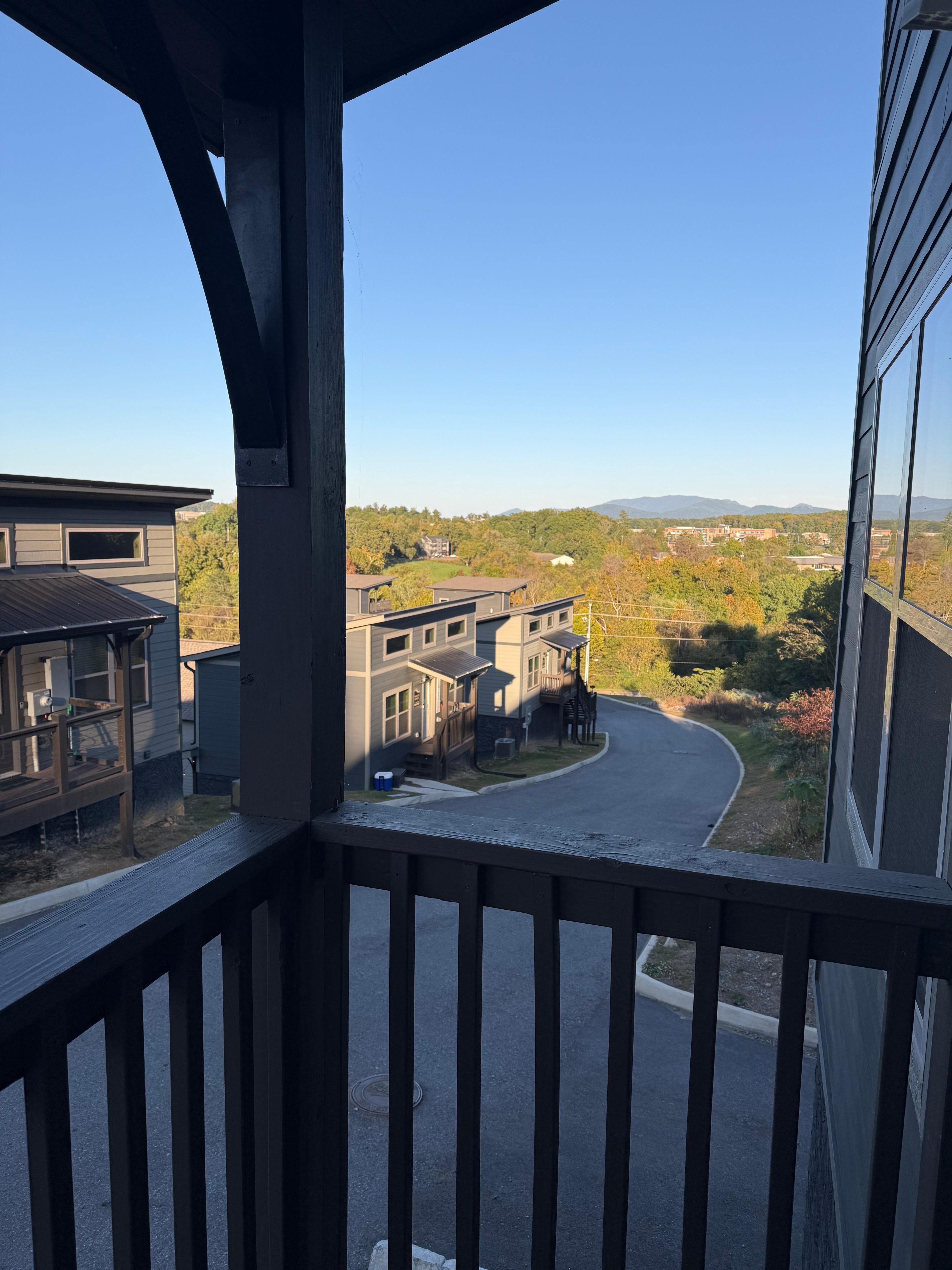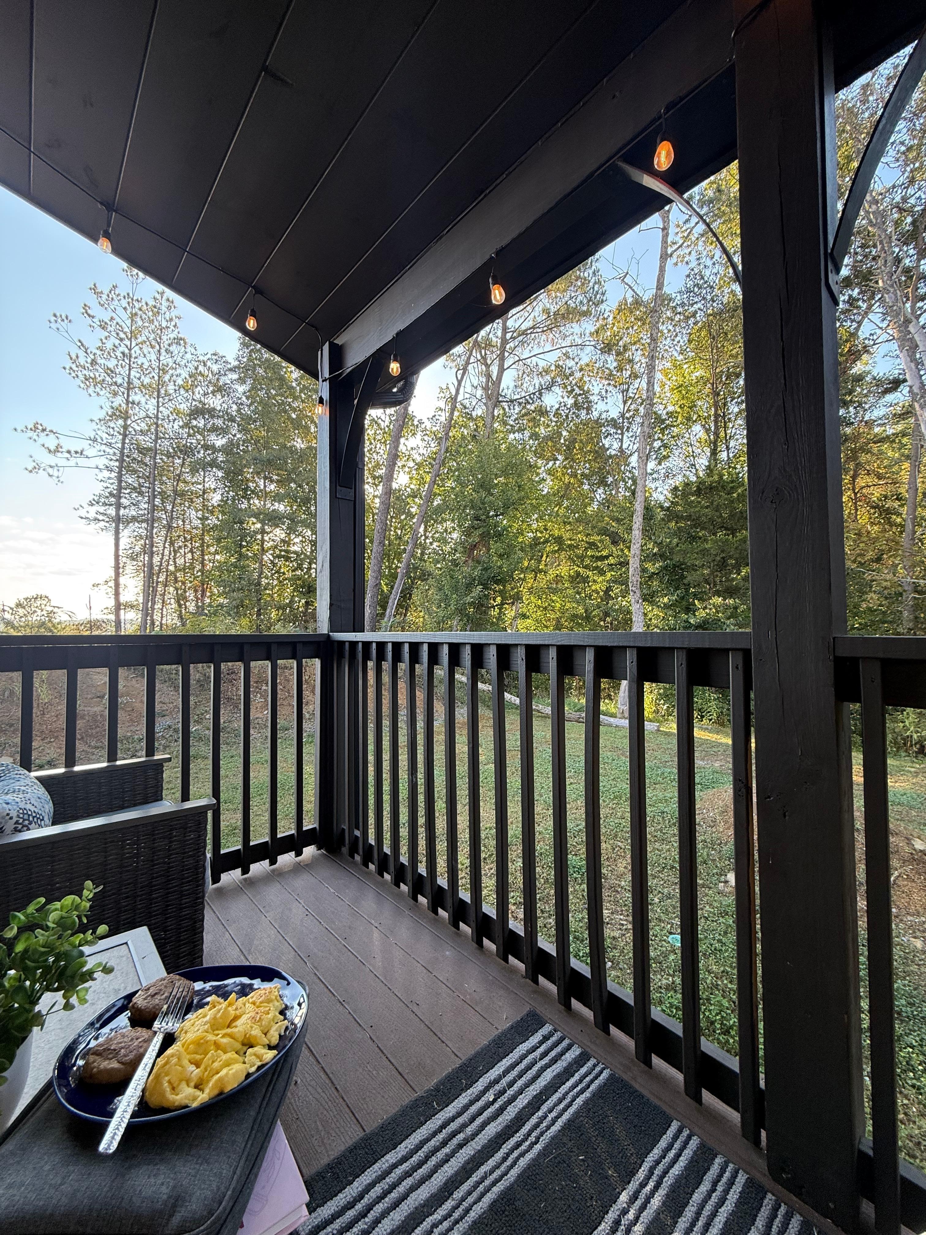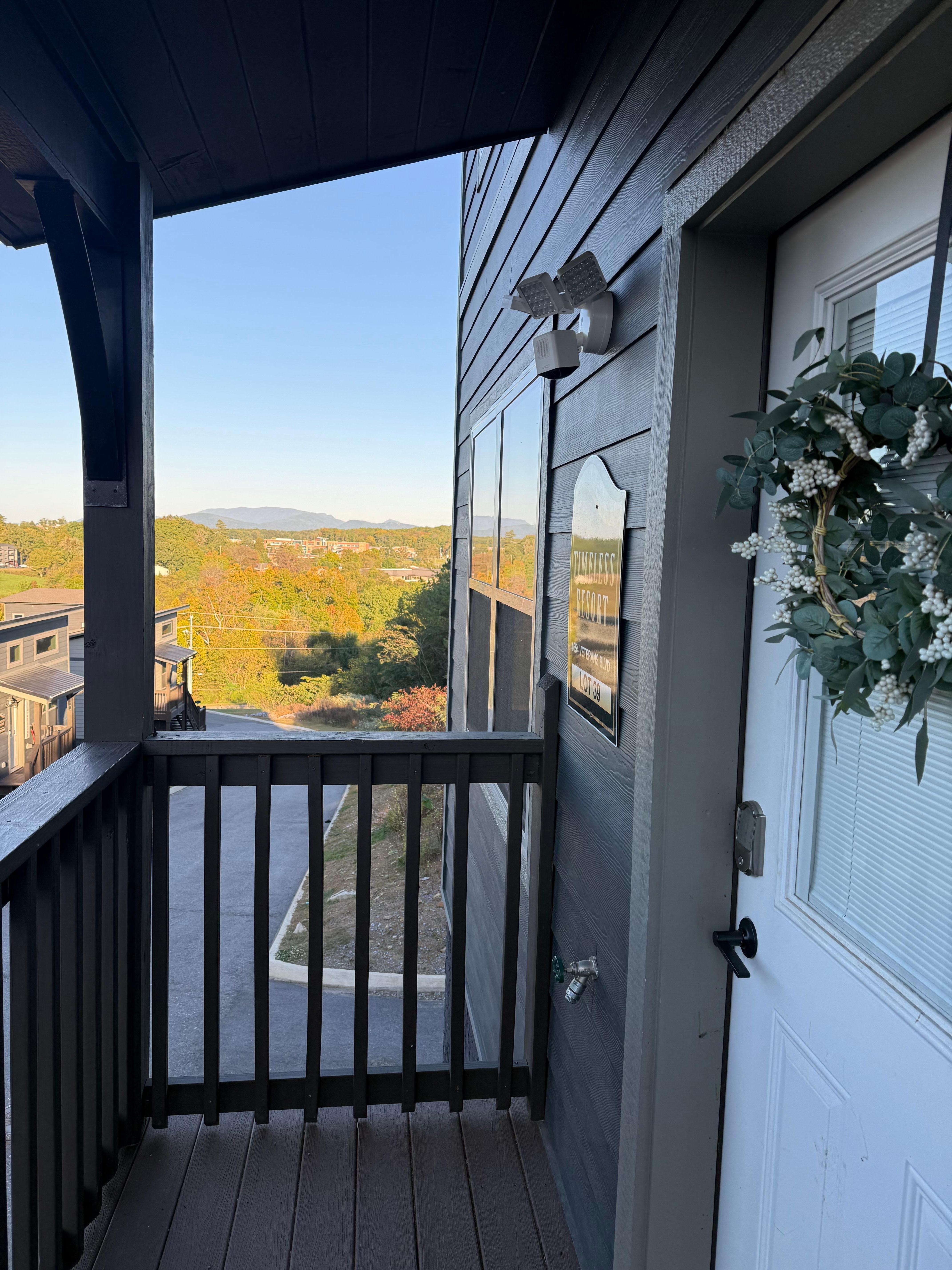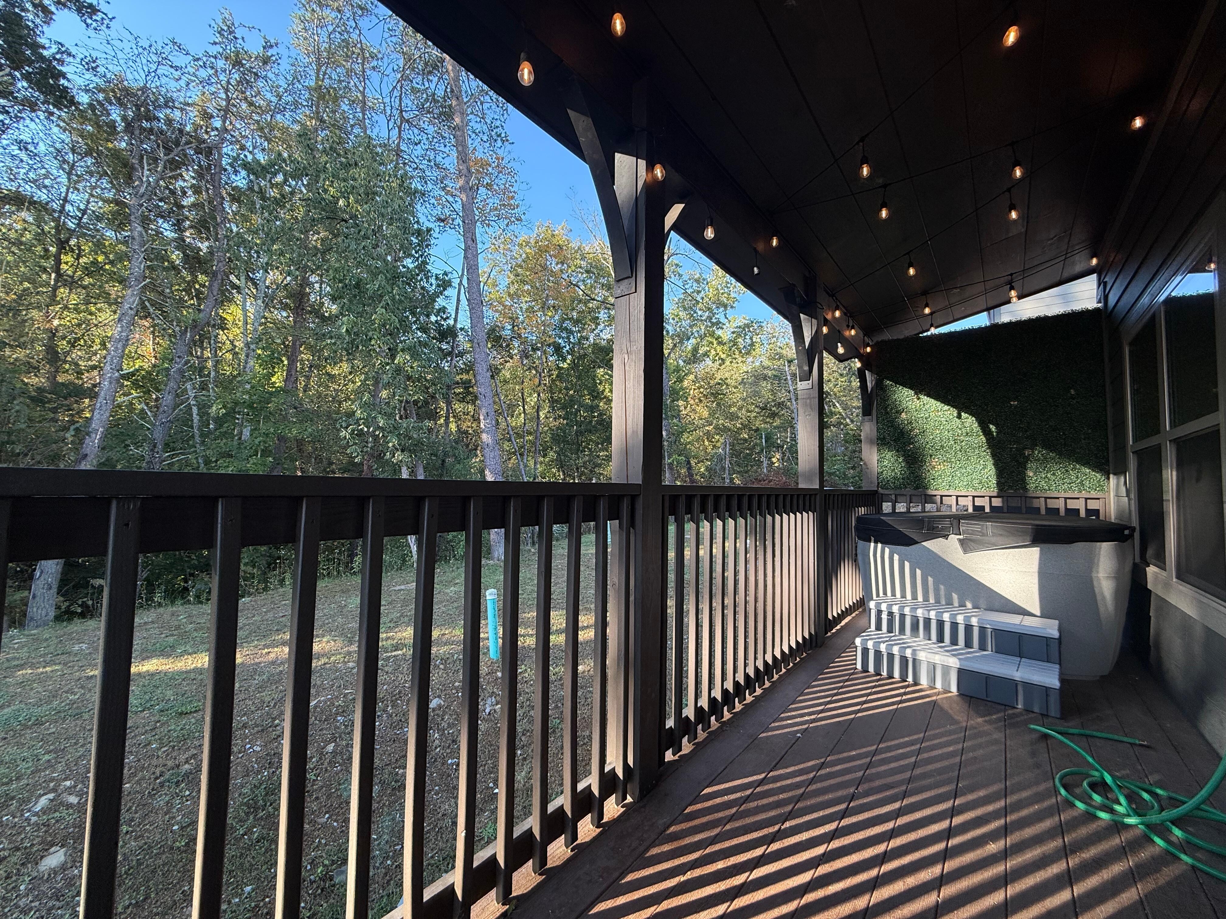 Relax in the hot tub or have a quiet & peaceful time with your favorite drink sitting on the glider chairs while soaking in the mountain view!