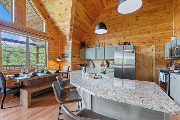 -Fully equipped kitchen with all cookware, utensils, and appliances
