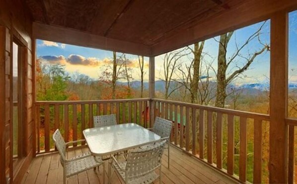 "Always & Forever" takes you away from the everyday routine and transports you to a mountain vacation setting so richly deserved. With sunrise views of Mt. Leconte off the front porch to memorable sunsets off the back porch, you'll think you're miles from it all when staying just minutes from the heart of all the action. This cabin for rent near Dollywood also provides quick easy access to the Gatlinburg Glades Arts Crafts Community and the entrance into the Great Smoky Mountains National Park.