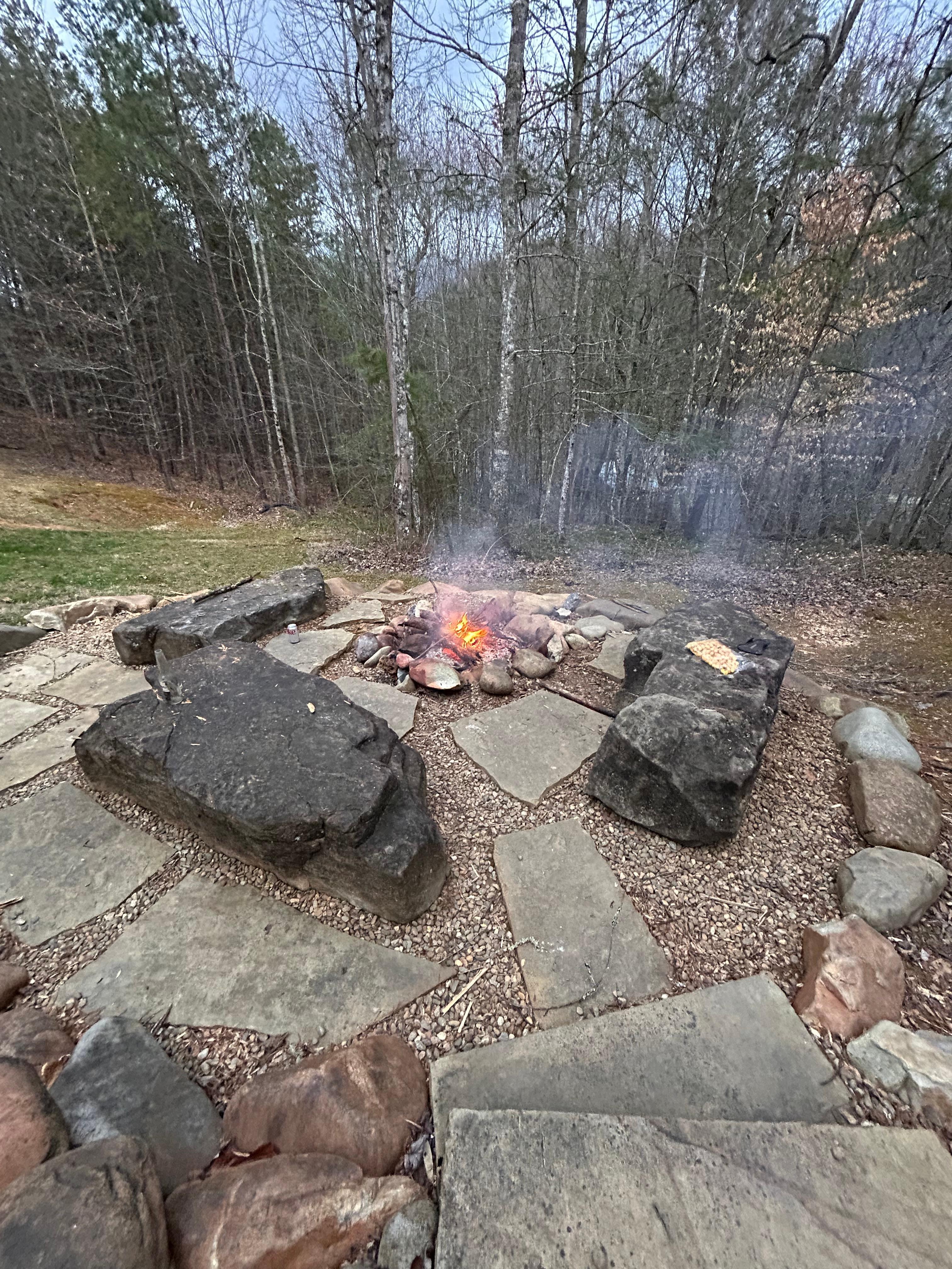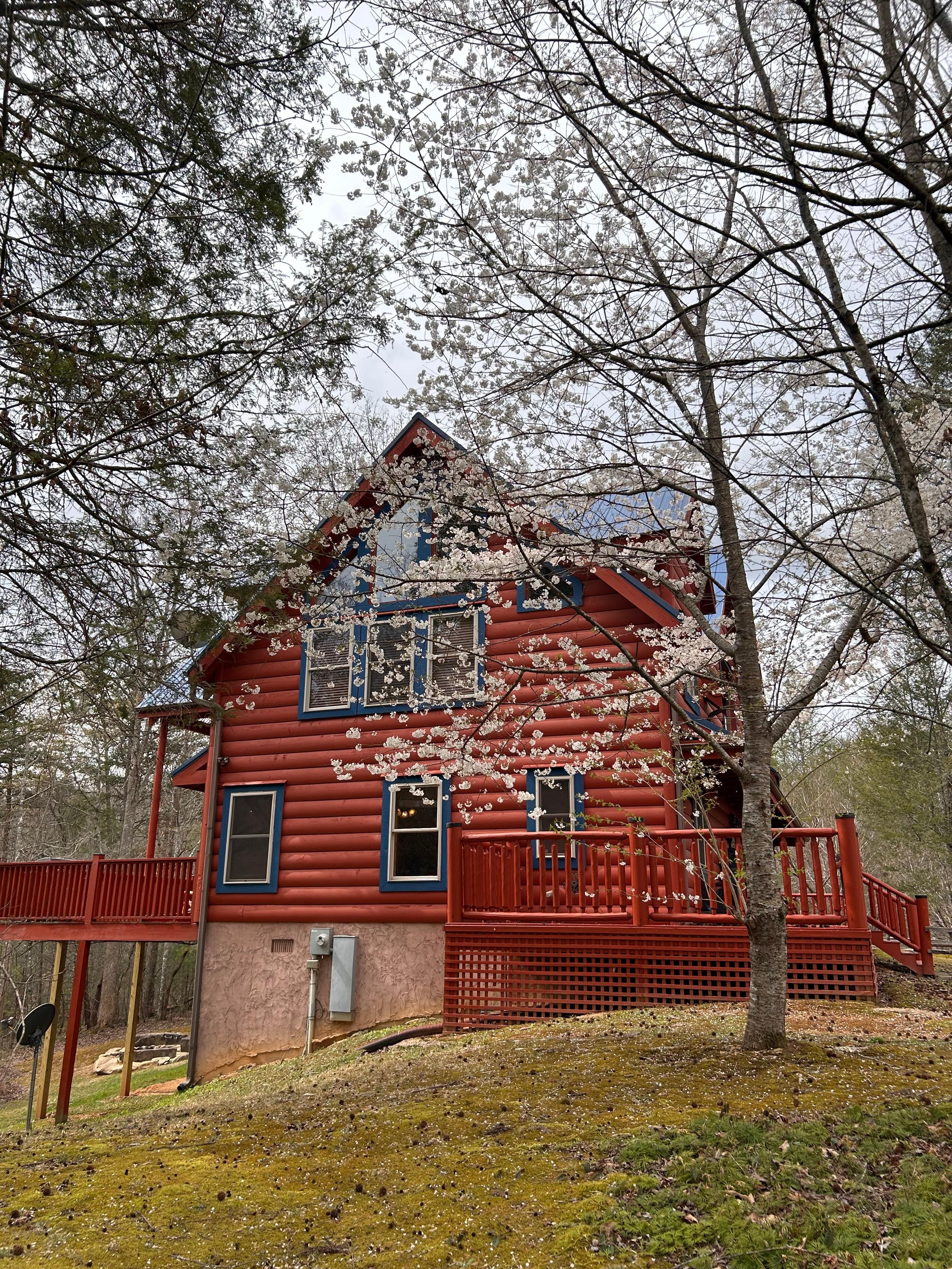 PROPERTY: Our gorgeous cabin boasts a gently sloping yard with WOODED VIEWS and grass, an OUTDOOR FIRE PIT (firewood not provided) with wooden benches, and a gravel driveway that has parking for up to six vehicles. Guests can play yard games (we have a cornhole board)! A unique feature and huge peace of mind for parents is that the property has NO STEEP DROP OFFS!