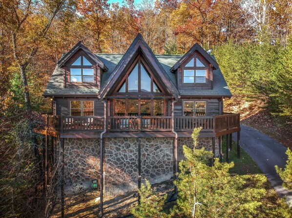 Jedes Zimmer ist exquisit: Es gibt große Schränke, geräumige Badezimmer, bequeme Betten und außergewöhnliche Annehmlichkeiten. Vom Wohnzimmer und jedem Schlafzimmer aus haben Sie einen atemberaubenden Blick auf die Great Smoky Mountains. Sie werden das riesige Wickeldeck lieben, das in der Mitte abgedeckt und auf jeder Seite offen ist. Es gibt viele Liegemöbel, einschließlich Wippen, so dass Sie sich entspannen und die Aussicht auf die Berge genießen können. Die Gewölbedecke und die Panoramafenster lassen viel Licht in das professionell eingerichtete Familienzimmer. Es verfügt über ein Ledersofa und zwei Sitzstühle, einen einladenden gestapelten Gas-Kamin und einen 43-Zoll-Flachbild-HD-Fernseher mit DVD und Blu-Ray sowie DirecTV. Die außergewöhnlich ausgestattete, große Küche ist mit schönen Schränken ausgestattet und verfügt über einen Flachbildschirm, zwei Waschbecken sowie schöne Fliesenoberflächen. Der Essbereich verfügt über einen wunderbar gearbeiteten Tisch und sechs Stühle.