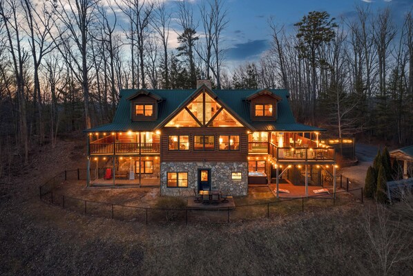 ⬥ 7 miles to Gatlinburg ⬥ 10 miles to Pigeon Forge ⬥ 5 minutes from Arts and Crafts ⬥ 1GB WiFi ⬥ 4K HDTVs in all Room ⬥ 2 Full Kitchens ⬥ Private Office Workspace ⬥ Wrap around porch with porte co·chère for unloading ⬥ 17 private acres ⬥ Firepit and more!