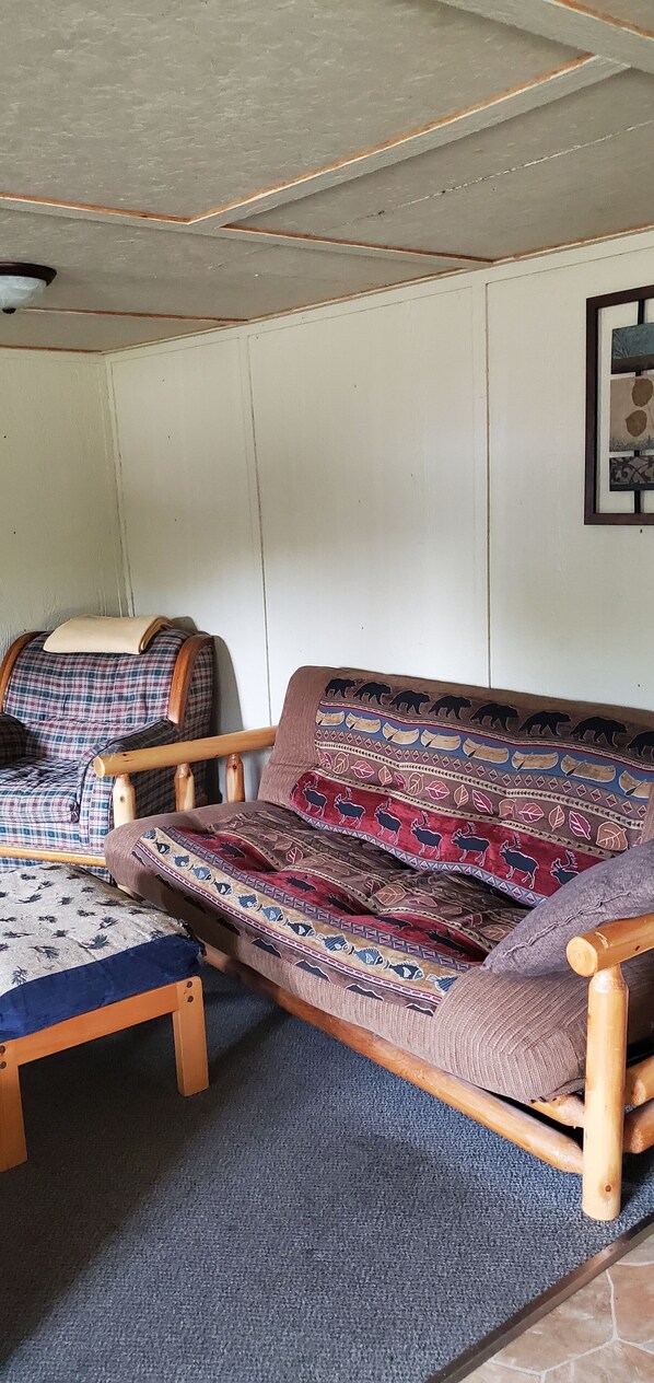 We did not stay. The easy chair is nasty. Worn, torn and dirty arms. The manager said it is antique. It is not, just plain old and needs to be in the garbage. The ottoman has a rather large hole in the material. There are bunk beds but no ladder to get to top bunk. Talked to manager and we were told cancellation had to be 12 days prior. We offered to pay for one night ( we had booked it for 3 night)but were told we would not get any refund. How are you to know 12 days in advance what it is really like. I feel like this is a gotcha. That is money right down the drain.. What a scam!!