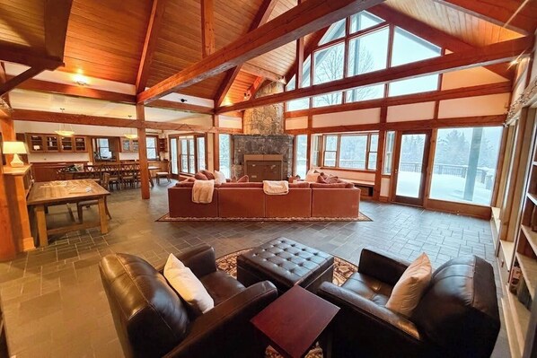 Serene house on 35-acres, panoramic mountain views, fireplace, pond, trails, a/c