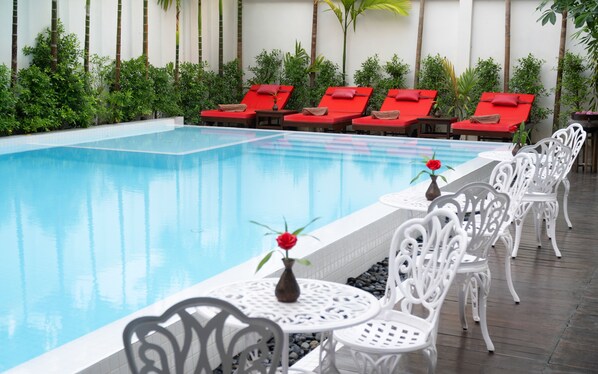 Hotel im luxuriösen Stil, in unmittelbarer Nähe zum Einkaufszentrum in Siem Reap und mit Weinkellerei