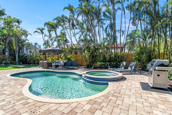 Es ist Zeit f��r diesen Urlaub! Und es gibt keinen besseren Ort, an dem Sie sich so fühlen wie unser Ferienhaus Casa Leone! Die lebhafte, üppige Landschaft, die es umgibt, führt Sie direkt am Pool, wo sich Ihre Welt in ein privates karibisches Paradies verwandelt, das tief in Floridas Dschungel steckt. Drau��en genießen Sie den privaten beheizten Pool und das Spa, viele Liegen und Sitzgelegenheiten f��r Dinnerpartys! Egal, ob es Zeit ist, den Grill anzuzünden und ein paar Melodien zu spielen, oder einen Moment, in dem Sie ein Buch ruhig im Morgenlicht lesen müssen, Casa Leone kann Ihnen alles liefern, was Sie möchten.